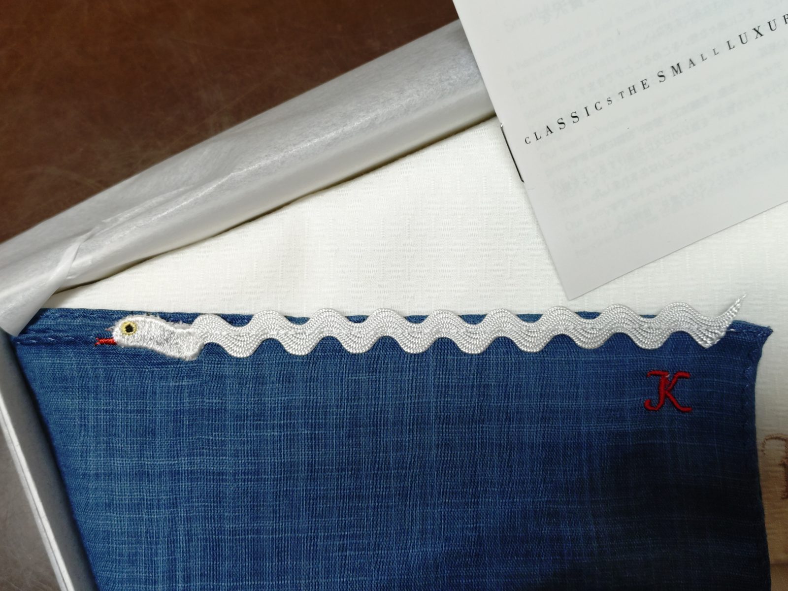 白いハンカチは、仕事で使う物。まだまだで元気お仕事頑張ってください、という思いを込めた物でした。それに、その人らしい物を加えていますが、私は巳年なので可愛らしいヘビの模様が付いているものでした。感謝、感謝です!😁